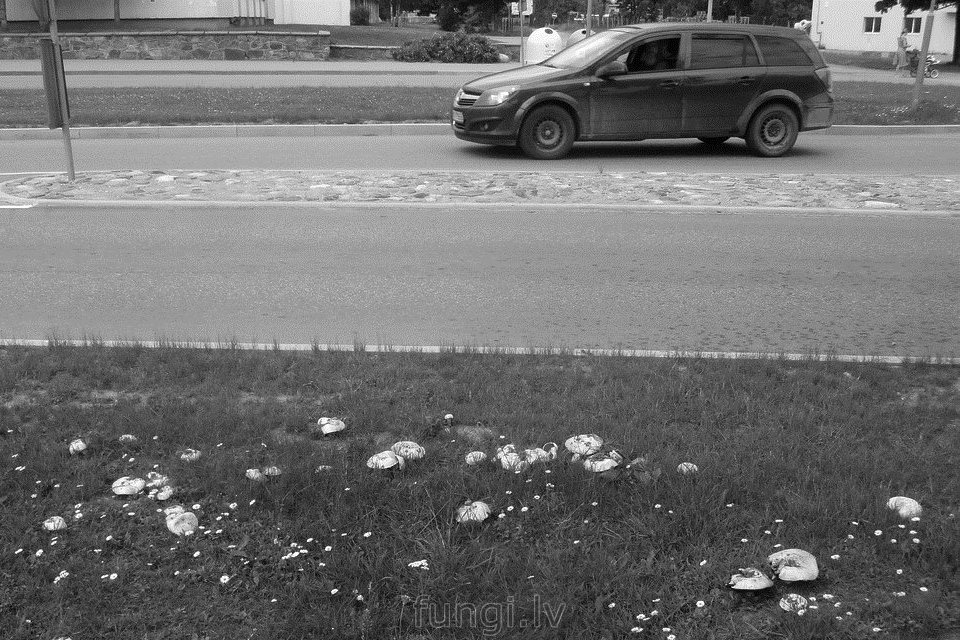 Nerimstošās transpota plūsmas kavēti, pašā ielas vidū uzradušās atmatenes 3. Milzu atmatene - Agaricus vaporarius / Agaricus subperonatus