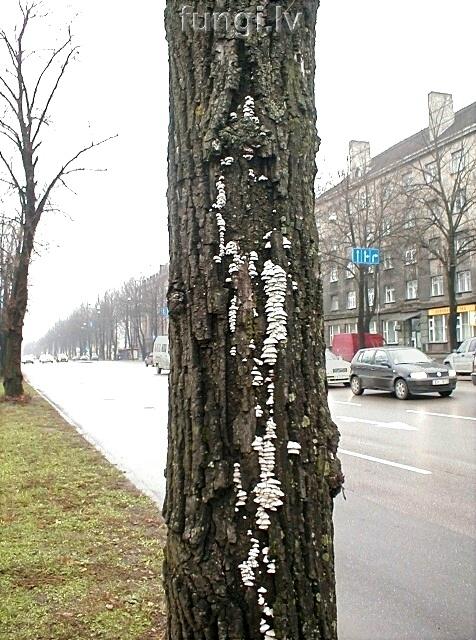 Pat Rīgas visdzīvāko ielu malās uz daudziem kokiem aug parastā skaldlapīte.