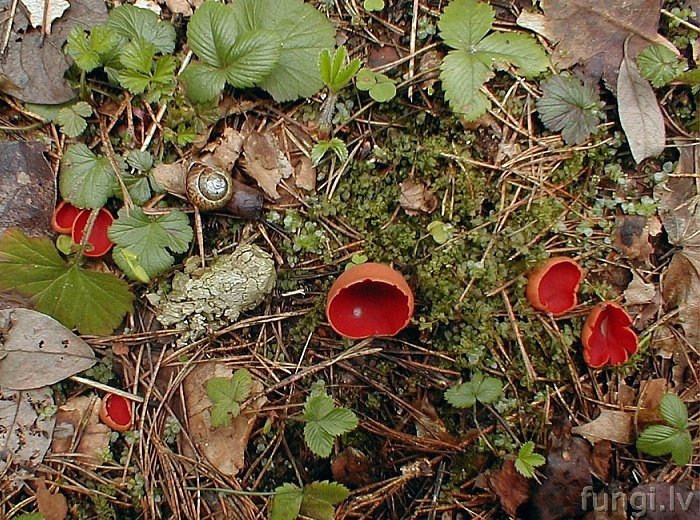 Austrian Elfcaps often grow along fallen decaying twigs.