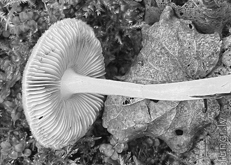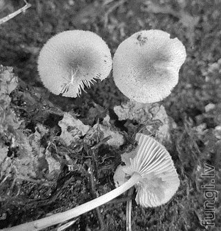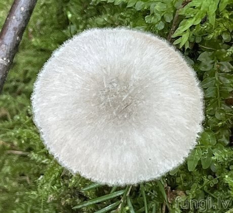 Sīka (diametrs ½-2 cm) lapiņsēne ar gaišpelēku, vidū tumšāku (pat līdz tumšbrūnai) cepurīti,